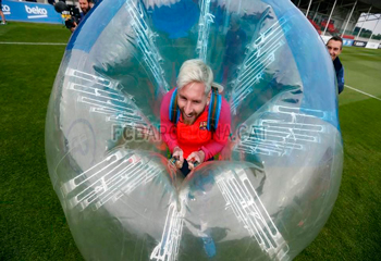 "Barselona”nın futbolçuları qeyri-adi məşq proqramını icra ediblər. Komanda.az xəbər verir ki, "Barsa”lı futbolçular başlarına şar geyinərək futbol oynayıblar. Belə əyləncəli futbol oyunçuların xoşuna gəlib. Onlar qarşılaşma ərzində bir-birlərinə təzyiq göstəriblər. Qolları hərəkətsiz olan futbolçular qaçarkən, müvazinətlərini saxlaya bilməyərək, yıxılıblar. Bu da futbolçuların əhval-ruhiyyəsinə yaxşı mənada təsir edib.
