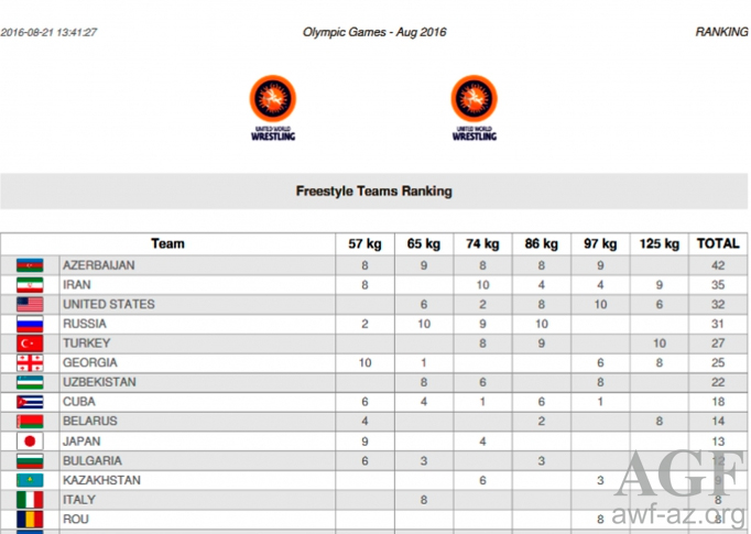 Qeyd edək ki, qazanılan medalların sayına görə yığmamız bütün komandaları qabaqlayıb. 6 nəfərlə təmsil olunan komandalardan heç biri 5 medal qazana bilməyib. Belə ki, Rio Olimpiadasında Azərbaycanla yanaşı, Rusiya, İran, Monqolustan, Gürcüstan, Türkiyə və ABŞ sərbəst güləş komandaları da tam heyətlə iştirak edib. Türkiyə, Rusiya və İran 3, ABŞ və Gürcüstan 2 medal qazana bildiyi halda, Monqolustan sərbəst güləş yığması Olimpiadanı medalsız tərk edib.