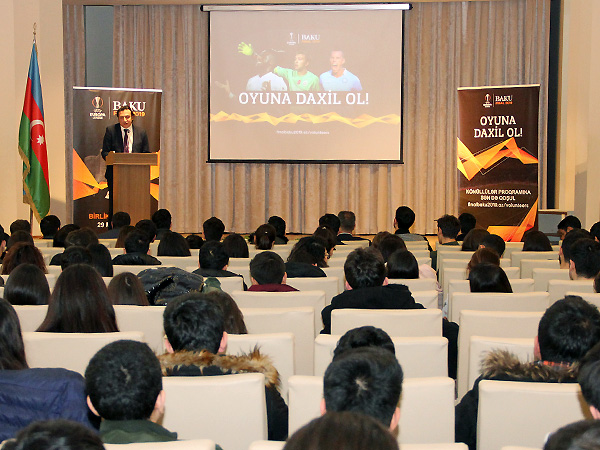 Sportfm.az xəbər verir ki, Azərbaycan milli komandasının və “Qarabağ” klubunun üzvü Mahir Mədətovun, UEFA Avropa Liqası 2019-un səfiri Vəli Qasımovun, eləcə də 80-dən çox tələbənin iştirak etdiyi görüşdə Avropa Liqası ilə bağlı keçirilməsi planlaşdırılan tədbirlər haqda təqdimat nümayiş olunub.