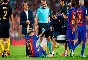 "Barselona"nın futbolçusu Lionel Messi zədələnib. Sportfm.az xəbər verir ki, argentinalı hücumçu İspaniya La Liqasının 5-ci turunda "Atletiko" (Madrid) görüşün (1:1) 59-cu dəqiqəsində zədə alıb və məcburi əvəzlənib. Onun təxminən üç həftə yaşıl meydanlardan uzaq qalacağı gözlənilir.