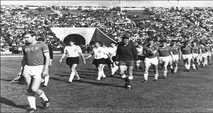 Fotoda Aleksandr Syomin kapitan kimi SSRİ yığma komandasını Avstriya yığmasına qarşı oyuna çıxarır.