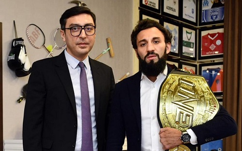 Azərbaycanlı kikboksçu Çingiz Əlləzov gənclər və idman naziri Fərid Qayıbovla görüşüb.
